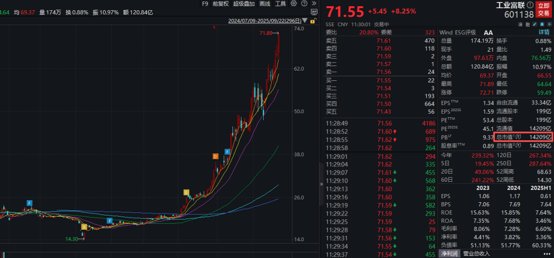 A股电子板块再掀涨势 工业富联市值突破1.4万亿