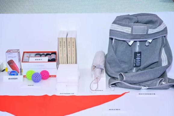 现场陈列了纳米红领巾、纳米海绵魔力擦、纳米袜子等一系列融入纳米技术的生活用品。中国科学院苏州纳米所高级工程师、江苏省科普作家协会理事薛进对这些产品进行了讲解,借助纳米的“魔力”,让普通物品展现出非凡之处。