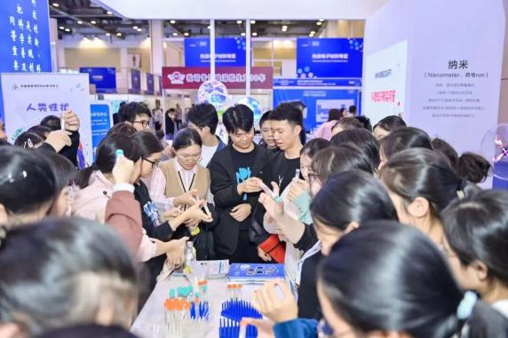 纳米科普展位于B1馆T30展区,现场划分了第三代半导体知识及应用展区、纳米展品区等多个板块。此外,还特别策划了第三代半导体产品体验、冷泉港DNA粗提取实验及纳米知识有奖问答等互动环节,吸引了大批观众积极参与,现场热闹非凡,人流不断。