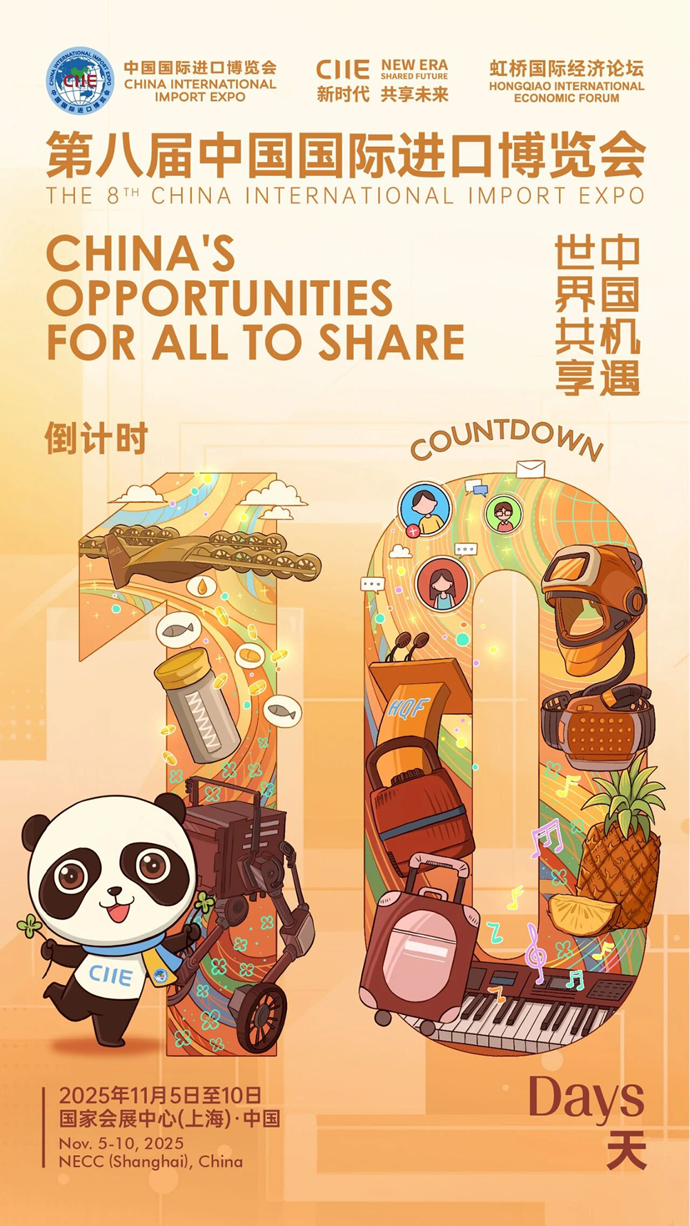 10月25日,第八届进博会开幕倒计时10天海报