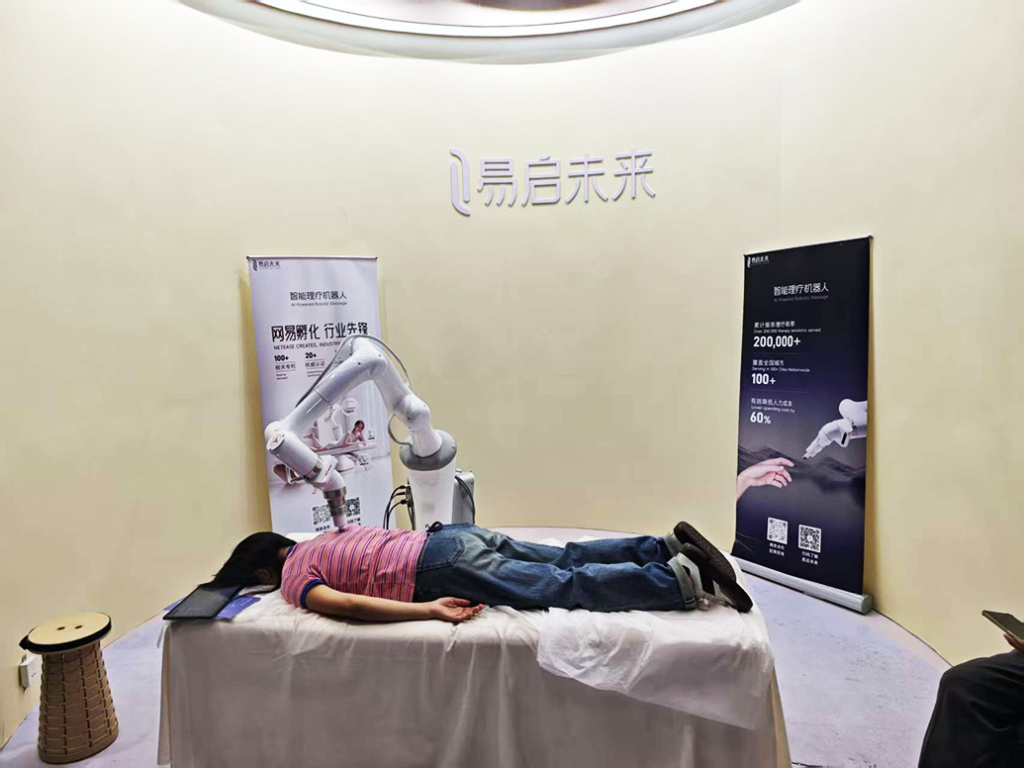 现场工作的智能理疗机器人 澎湃新闻记者 范佳来 摄