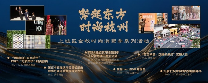 以‘万象风华’时尚盛典为开端,上城区商务局、时尚产业突击队推出的‘势起东方 时尚杭州’上城区秋冬时尚消费季系列活动将陆续开展。第三十三届汉帛奖暨长三角时尚产业创意智库成立仪式、潮起东方时裳四季「设计势件」系列活动、‘数智宋韵·汉服未来纪’汉服大秀等多种类型的艺术时尚活动将在年内陆续举办。
