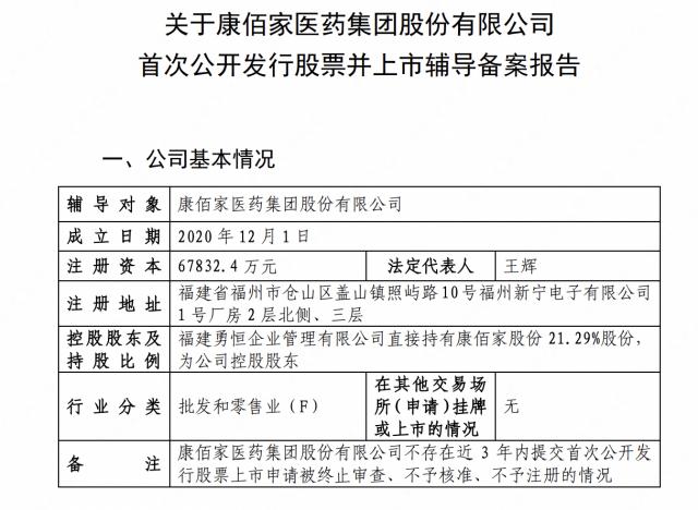 瑞财经 刘治颖 10月24日,康佰家医药集团股份有限公司(以下简称:康佰家)在福建证监局完成IPO辅导备案,辅导券商为中信证券,律师事务所为湖南启元,会计师事务所为天健。
