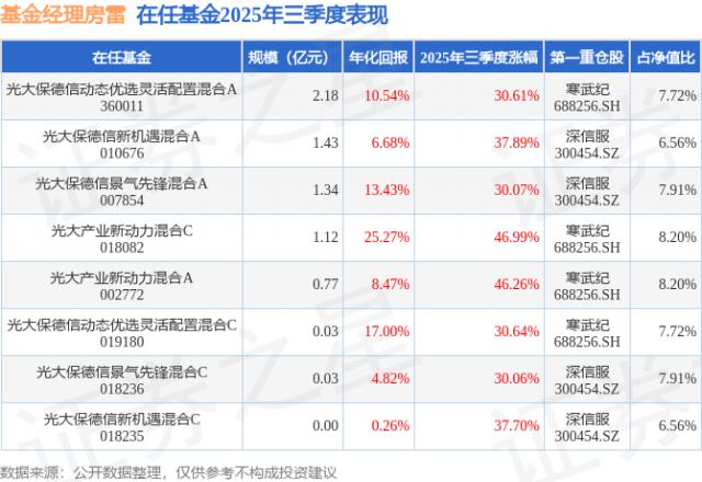 房雷2025年三季度出色表现:光大产业新动力混合C基金季度涨幅近47%