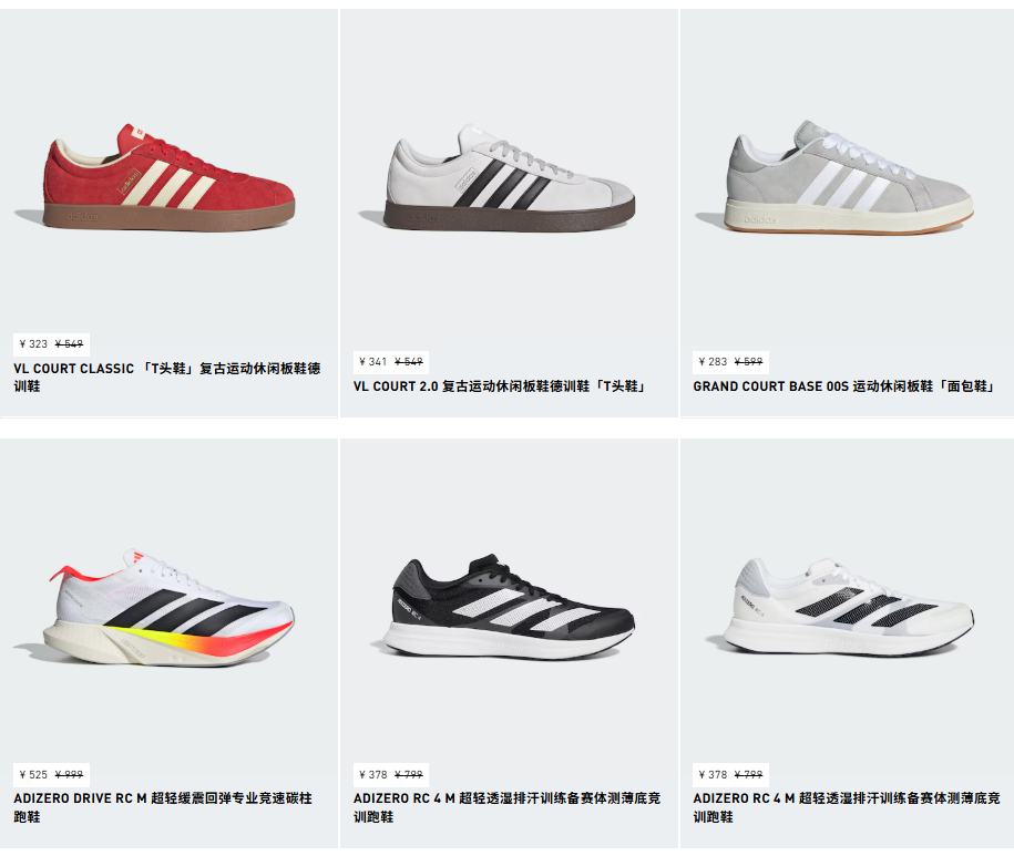 产品上,潮流Samba一度爆火,让阿迪触底翻身。其定价在1000元以下,促销时部分款式300 - 600元一双,平替版本VL COURT系列价格低至200 - 500元区间,深受消费者喜爱。