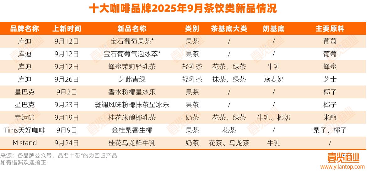 9月茶咖上新量创新低,各有新动态