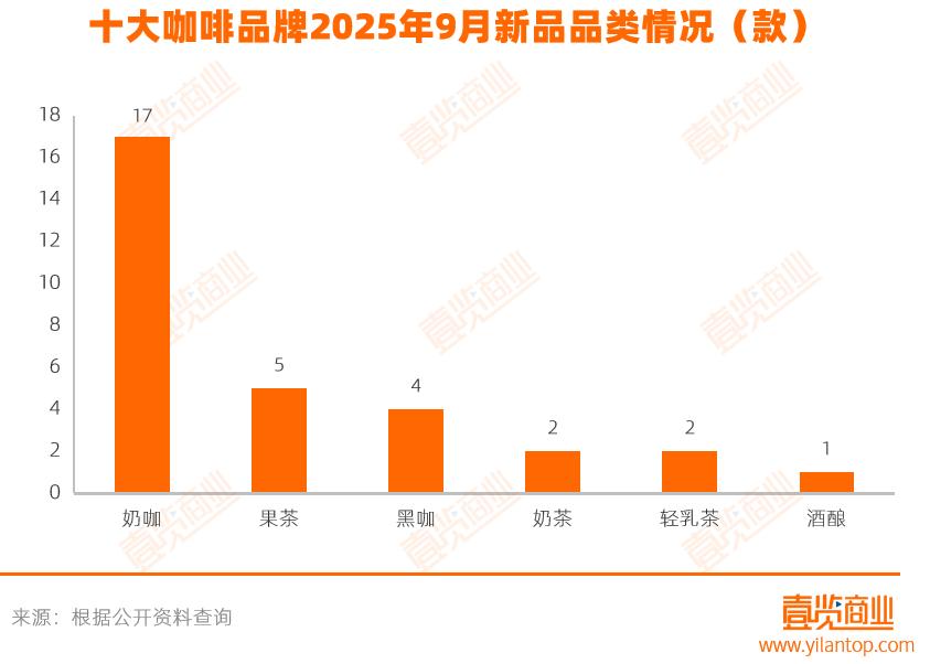 咖啡新品也倾向厚重化,奶咖类成推新重点。9月,咖啡品牌推出17款奶咖新品,占当月咖啡新品总量54.8%,同期果咖与黑咖新品分别为5款和4款。