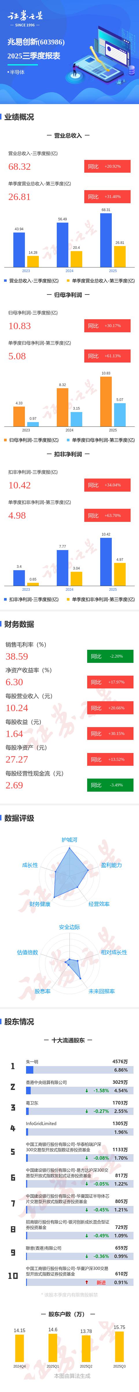 一图读懂兆易创新三季报:第三季度单季净利润同比大增61.13%