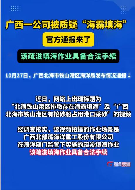 原标题:《广西北海疑现“海霸填海”?官方通报》