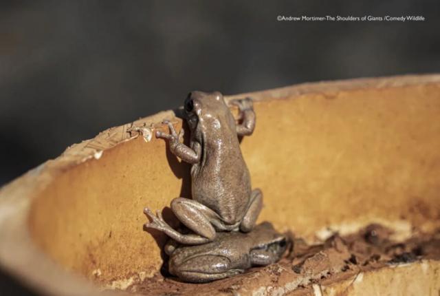 这群青蛙住在矿区钻孔套管里,个头矮看不到套管外世界,于是它们站在其他青蛙背上往上挤。