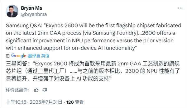 此前,Exynos 2500问题频出,比原计划上市时间推迟了一年多,前段时间才在Galaxy Z Flip7上首次亮相,作为老牌厂商的产品,其实际表现甚至不如小米玄戒O1。