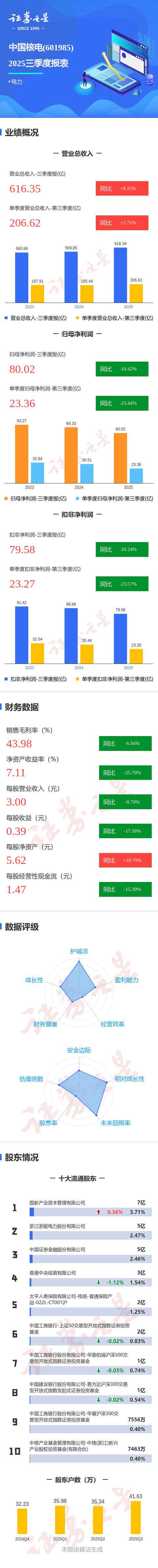 中国核电三季报图解:第三季度单季净利润同比降23.45%