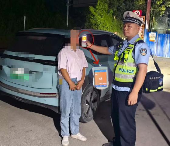 9月11日,百色市乐业县公安局交警大队在新化镇路段对一辆新能源小车例行检查时,闻到车内有明显酒气,随即对驾驶人进行呼气式酒精检测,结果显示其血液酒精含量为68mg/100ml,属于饮酒后驾驶机动车。