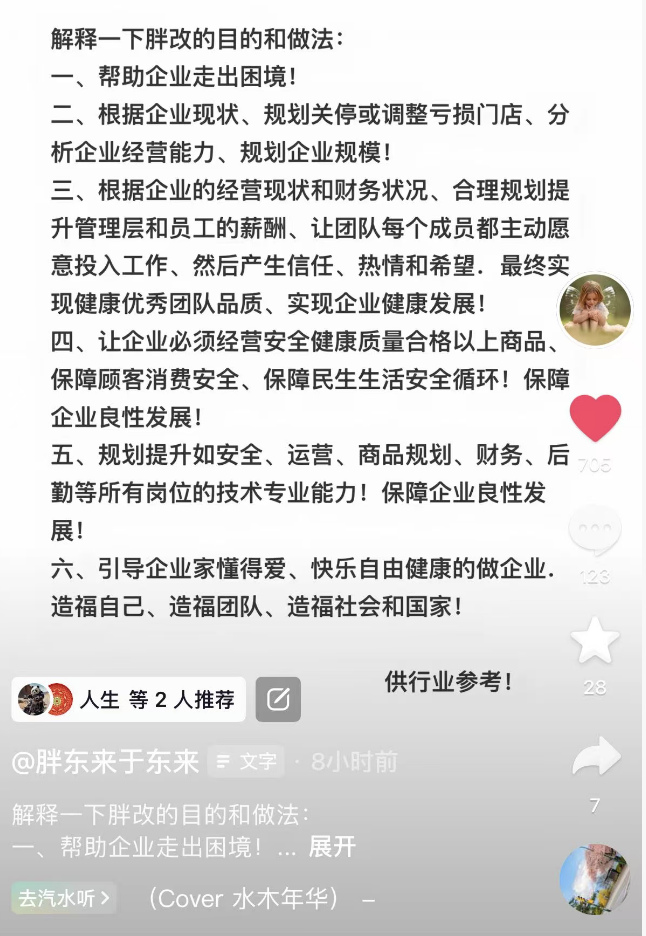 于东来再度阐明“胖改”目的与做法