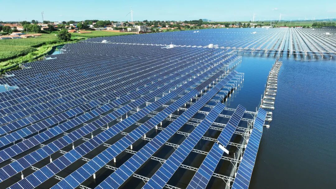 辽宁省铁岭市大青水库拍摄的光伏发电板 新华社记者 杨青 摄