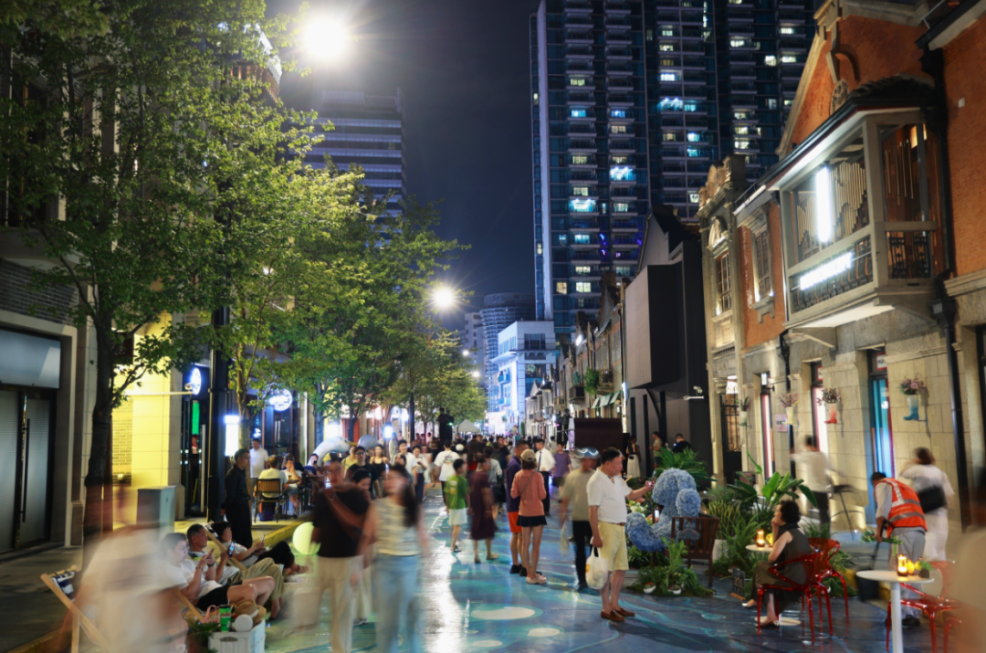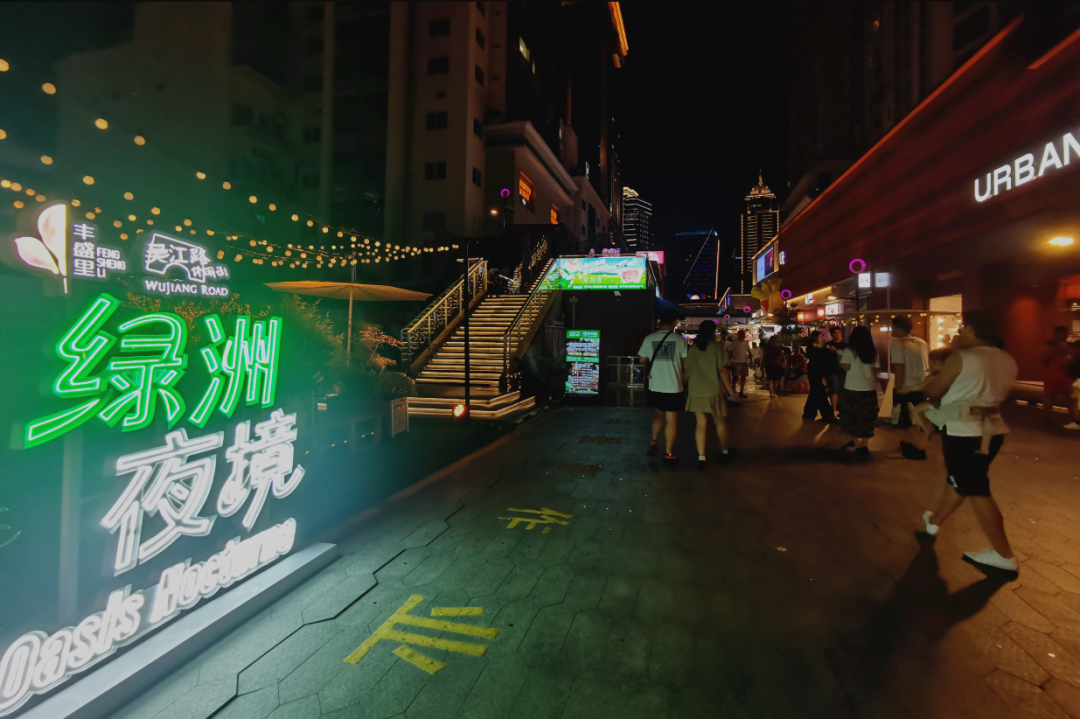 夜晚的吴江路休闲街,灯火通明、人流如织,热闹的市井氛围扑面而来,“好逛、好赏、好食”的夜生活消费场景随处可见。今年夏天,这个“食力街区”在人间烟火气之上,更增添了一份轻松的夜间氛围感。