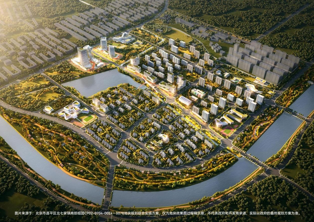 此次成交的昌平歇甲地块靠近北五环,西边挨着天通苑,西南方向直达朝阳新北苑,与朝阳仅一河之隔。地块整体用地规模约6.35公顷,规划地上建筑面积约10.47万㎡,包含2宗容积率在2.0 - 2.1的住宅用地,以及教育、文化、体育、社会综合服务4宗配套用地。