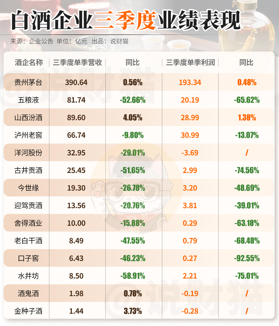 今日,酒企集中公布了三季度财报。虽说早有预期,毕竟大环境不佳还叠加了禁酒令,但白酒企业的业绩还是让人大跌眼镜。
