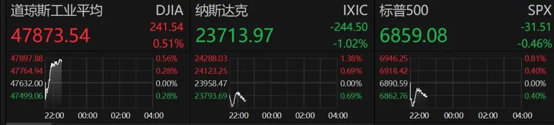 晚间时段,美股低开后走势分化,纳指小幅跳水且跌幅超1%,与此同时,国际金价则拉升走高。