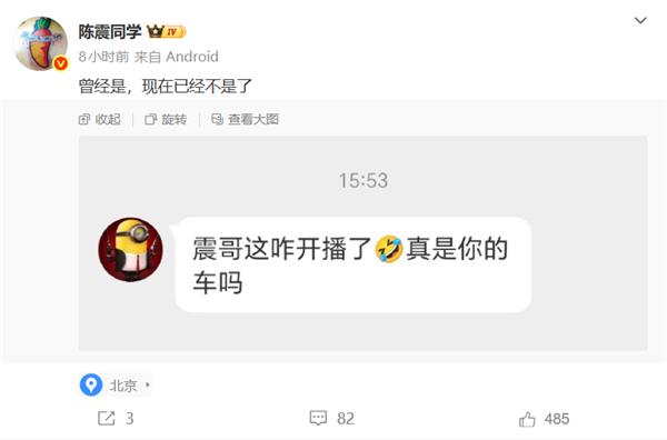 30日下午,有网友私信陈震,询问直播间里的车是否是他的,他回复称,曾经是,现在不是了。