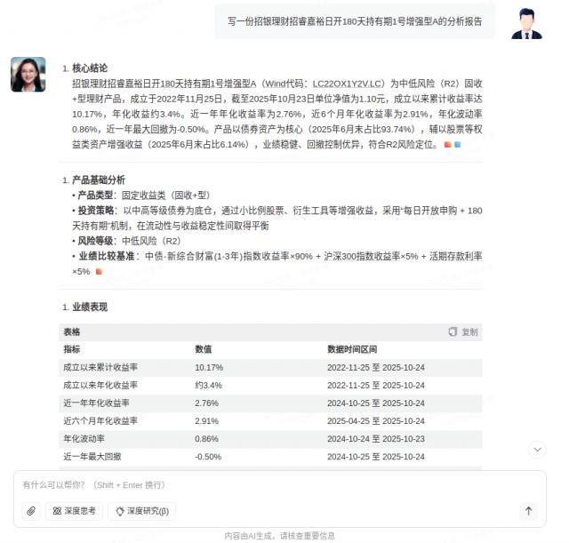 场景2:客户问“这个基金 / 理财 / 股票的信息和数据怎么样,快帮我看看”