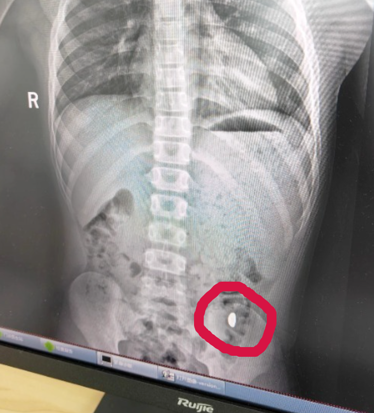 纪女士说:“当时我正在阳台洗衣服,他突然喊‘妈妈你快过来,我要死了,我把金子给吞了’。”一开始,她还以为孩子在开玩笑,等确认孩子真把金豆子吞了,她真是又好气又好笑。