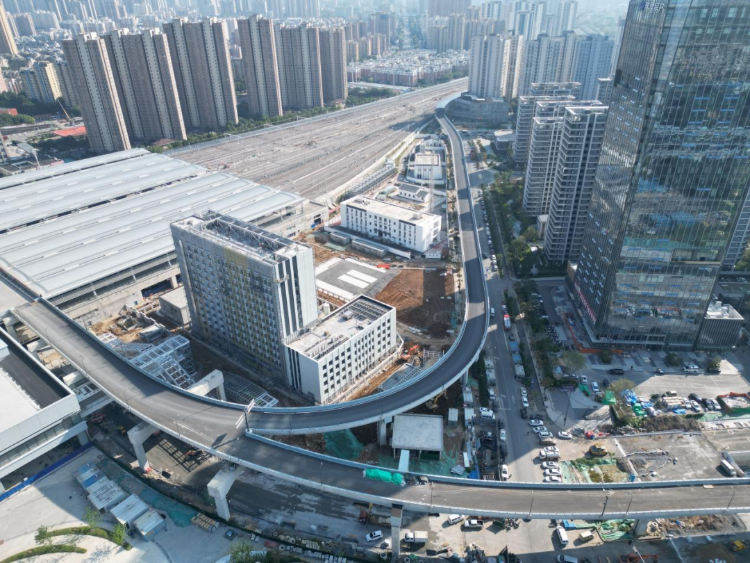 工程建成后,将进一步完善区域路网布局、疏解站区交通压力,提升周边道路通行效率,推动站城融合发展,可实现南北落客平台快速连通,形成“快进快出”的站区交通网络。