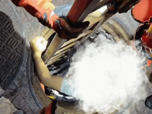 据浙江消防消息,近日,在浙江金华开发区一KTV门口,一小伙和朋友聚会结束后,走到一处没加盖的井旁时,不慎掉了进去。