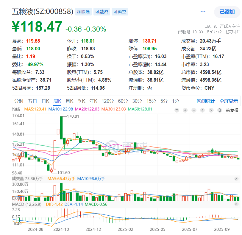 今年股价表现更明显,在A股科技、消费、医药、有色大牛市之下,五粮液今年跌11.5%,贵州茅台跌4.55%,远远跑输沪深300%超20%的收益率。