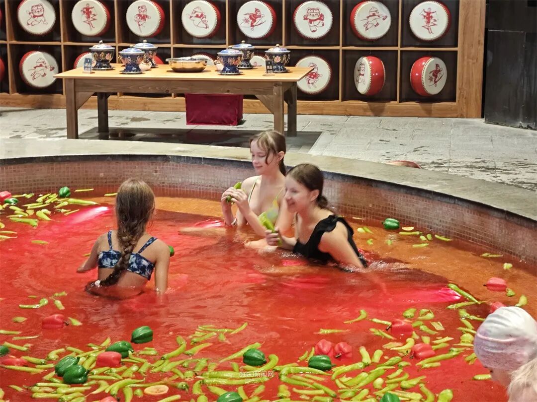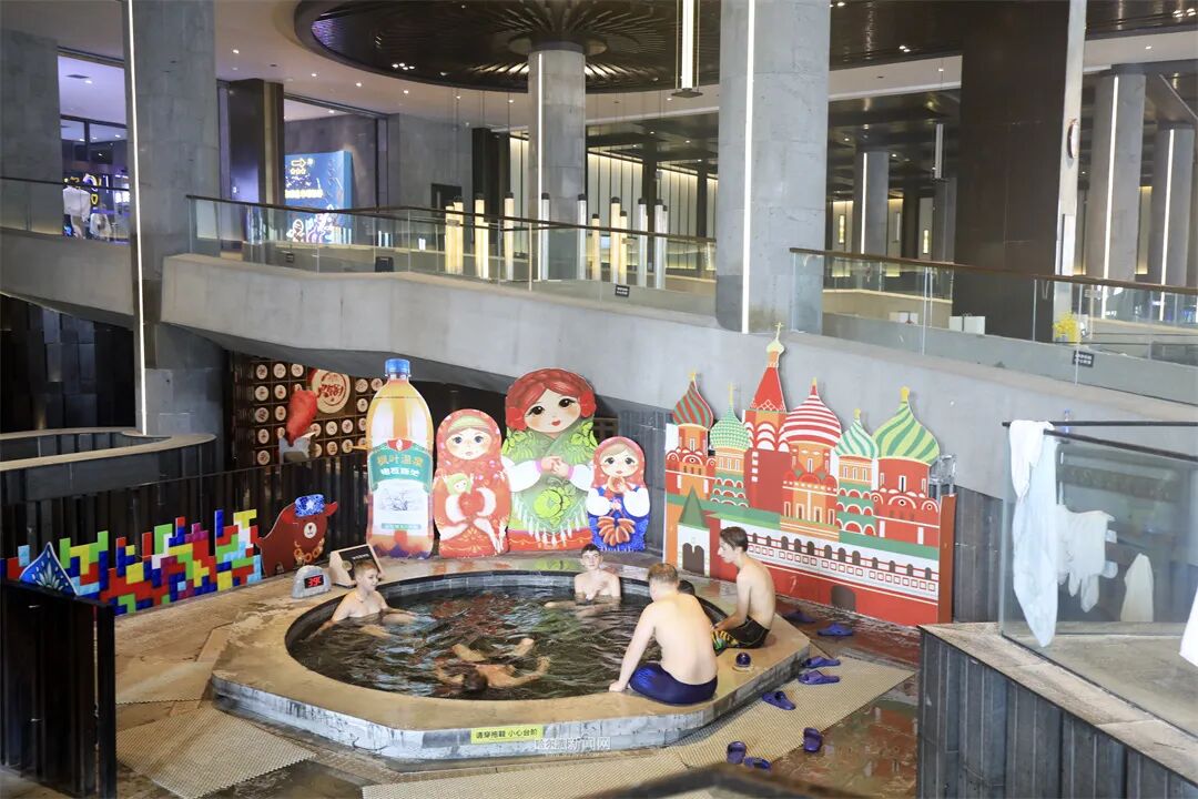 清晨时分,枫叶小镇温泉的停车场上,满载俄罗斯游客的旅行大巴接连不断。走进温泉区,到处都是金发碧眼的游客,他们有的在科技感十足的水疗设备前停下体验,有的在网红鸳鸯火锅池边拍照留念,时不时发出惊叹声。来自莫斯科的游客安娜在体验脉冲水疗池时,兴奋地说:“这些冲击水流设备太神奇了,在俄罗斯从没见过!” 温泉工作人员介绍,俄罗斯游客对园区内的智能温控泡池、9D飞行影院等科技设施很感兴趣,兼具观赏性和趣味性的鸳鸯火锅池更是成了他们必去的打卡点。