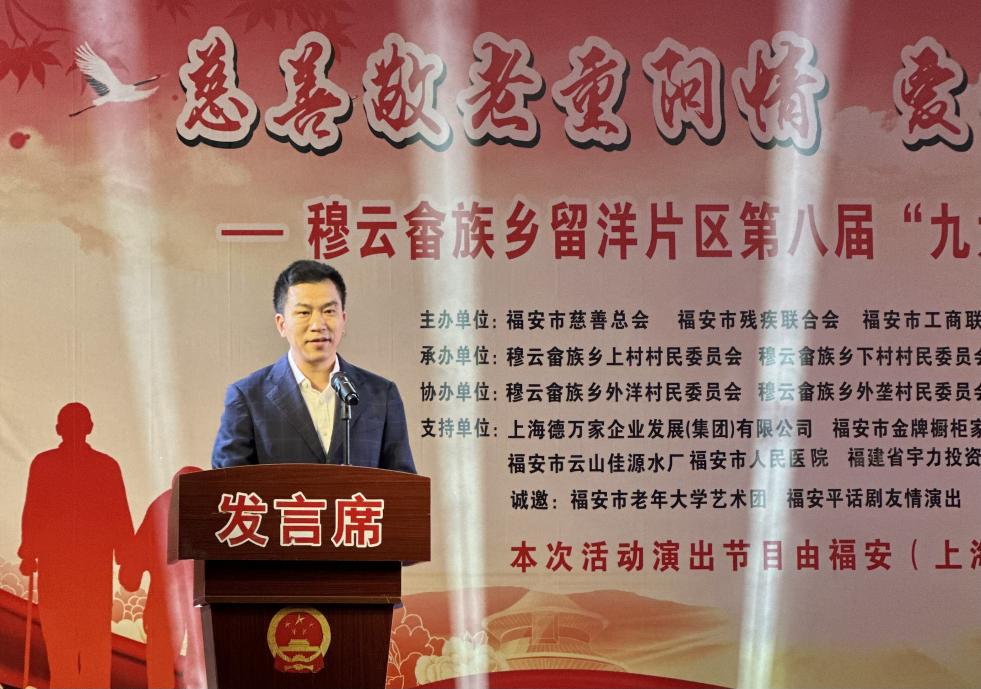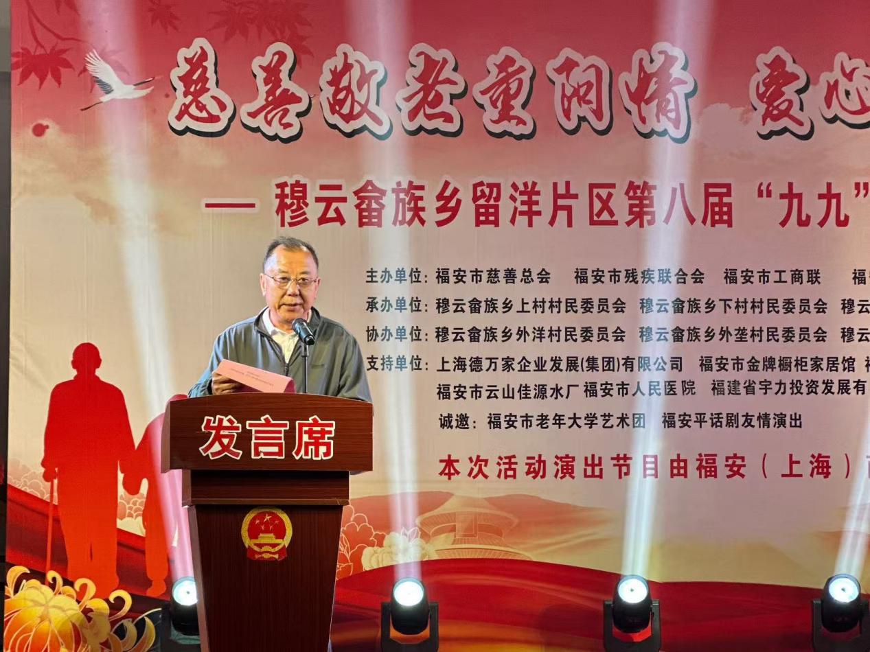 福安市上海商会执行会长、上海德万家企业集团董事长王德胜在致辞时提到,穆云乡留洋片区的敬老文化形式丰富多样,活动精彩纷呈,成功营造了敬老、爱老、养老、助老的良好风尚。2022年初,福安市上海商会公益基金捐建了上村互助孝老食堂,并且每年持续投入运营资金,让众多长辈在热气腾腾的饭菜中感受到深深的关爱。他表示,商会将继续积极参与和支持敬老公益活动,传承敬老孝老的传统美德。