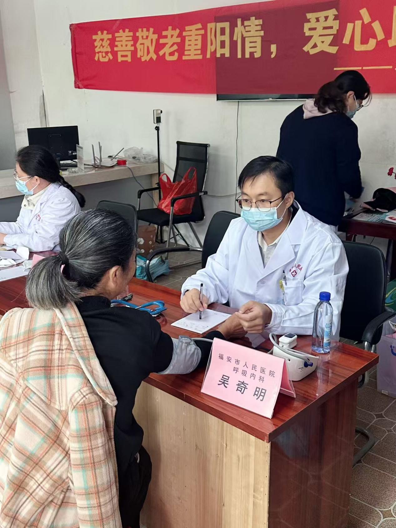 当天上午,福安市上海商会相关负责人和志愿者为片区五个村庄的230多名70岁以上老人精心准备了重阳敬老宴,还送上了慰问金和慰问品。同时,十余名来自福安市人民医院的医护人员来到上村村,为老人们提供了爱心义诊服务。
