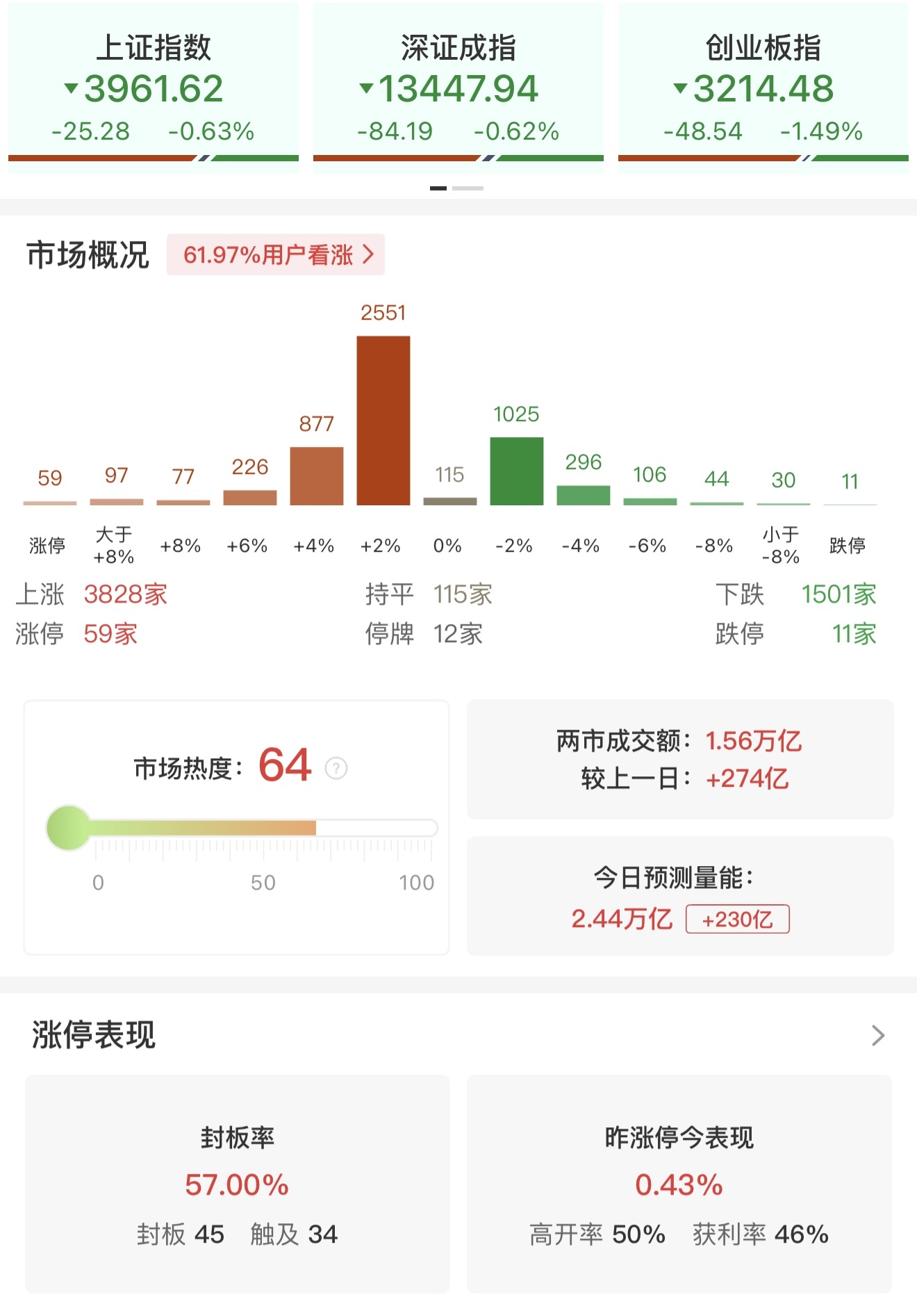 截至收盘,沪指下跌0.63%,深成指下跌0.62%,创业板指下跌1.49%。