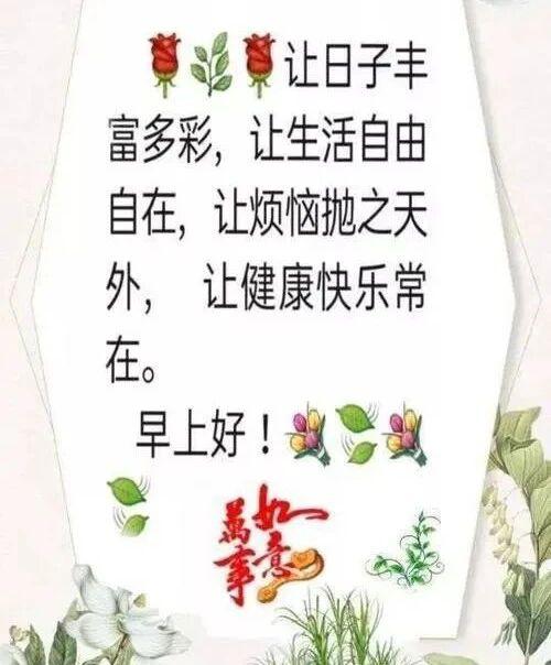 生活平淡却温馨,日子简单也富足。健康是宝,快乐无价。愿你每天心情如阳光般灿烂,照顾好自己,平安好运常相伴。早安,愿你的每一天都充满美好与喜悦!