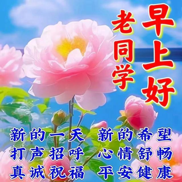 新的一天,给别人一个微笑,给自己一个拥抱;给生活一份感激,给心情一份鼓励。人贵在真诚,情贵在真实,缘贵在珍惜,心贵在善良。让我们以最好的心态,迎接快乐的每一天。老同学,早安!