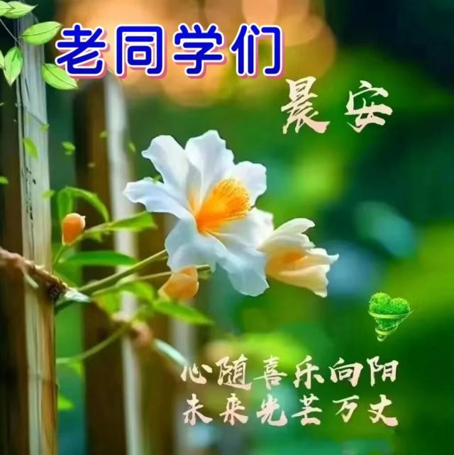老同学,人生路上,或许春风得意,或许坎坷不平,但无论如何,我们都要坚定地走下去。荣耀或屈辱,都应以平和的心态面对,少些无奈与感慨,多些从容和淡然。把心放平,生活便是平静的水;把心放轻,人生就是自在的云。新的一天开始了!老同学,早安!
