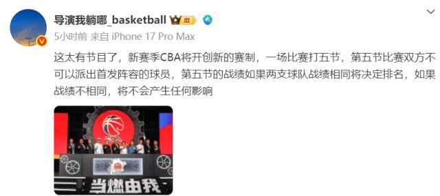 篮协新决策引争议:CBA新赛季追加第5节遭网友调侃