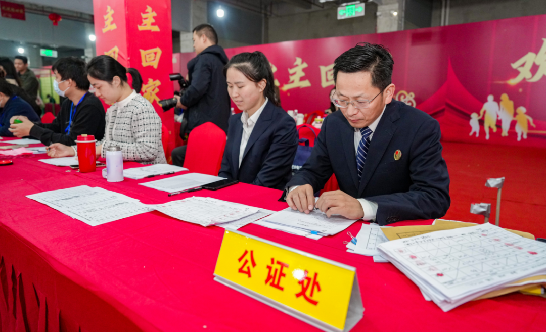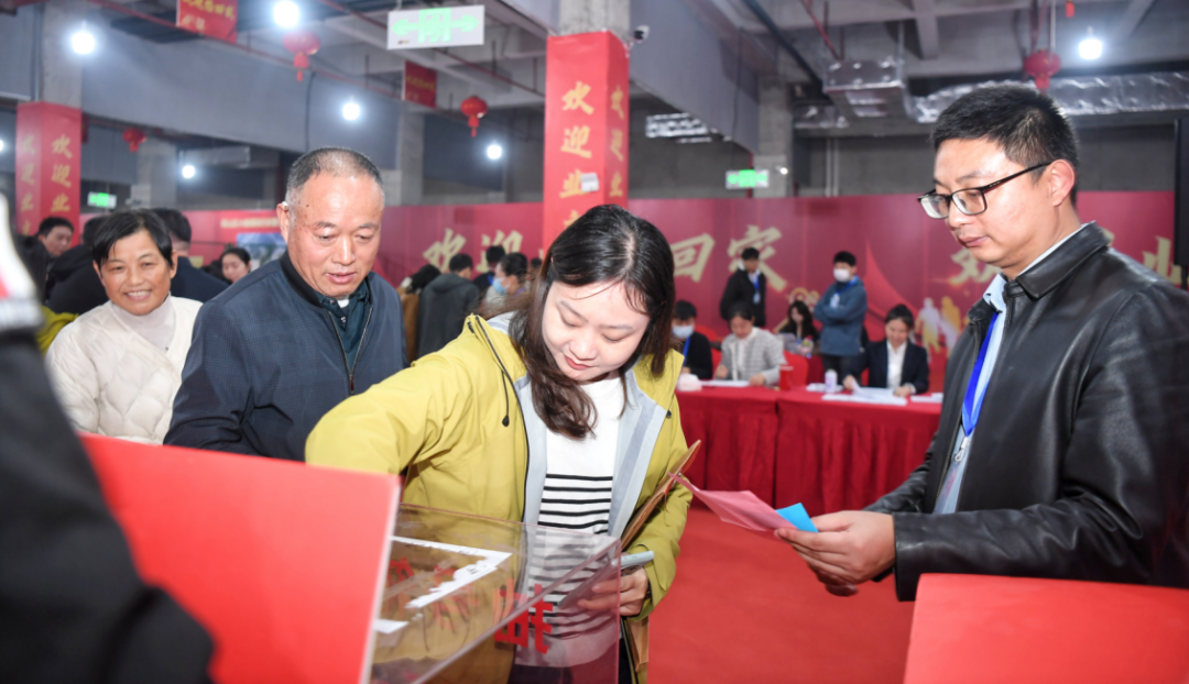 分房抽签现场,红色的引导标识格外醒目,工作分区清晰有序。村民们在工作人员热情周到的引导下,依次进行顺序登记、身份核验、叫号等待、上台抽签、确认登记等环节。