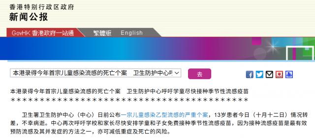 我国香港连续多日出现儿童流感重症(甚至死亡)病例 [ 1 ] :