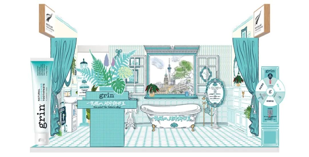 格润安(Grin)通过两个展台营造新西兰特色场景。主展台在8.1馆,打造“新西兰景观洗漱台”,推开窗户可见新西兰美景。第二展馆设在进博会文创馆,诠释“随行所欲,健康长伴”的品牌理念。