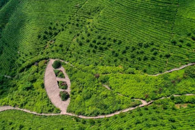 阳光洒在连绵的茶园山坡上,光影交错,微风吹过,茶叶轻轻摇曳,画面美如梦境。走累了可以到茶室品尝清茶,在绿意中释放压力,享受惬意的时光。