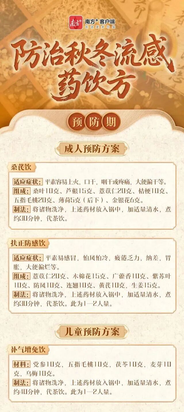 目前已进入流感季节,如何预防流感的发生是大家比较关心的话题。预防流感药饮方,快收藏↓↓