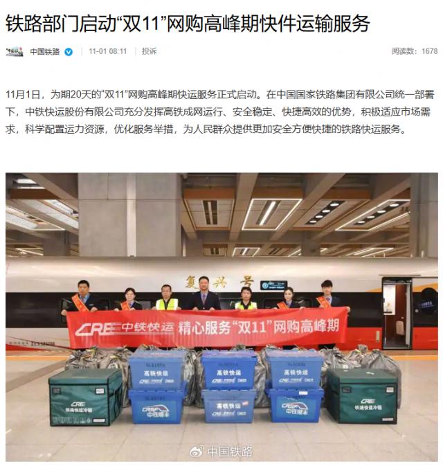 IT之家11月1日消息,中国铁路官方宣布,11月1日起,为期20天的“双11”网购高峰期快运服务正式开启,IT之家整理主要内容如下。