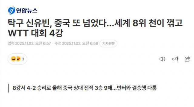 值得关注的是,申裕斌此前在中国大满贯赛事中同样打入四强。她也因此成为韩国乒坛历史上首位同时进入过WTT大满贯赛事和WTT冠军赛女单四强的球员,再次创造了新的历史纪录。