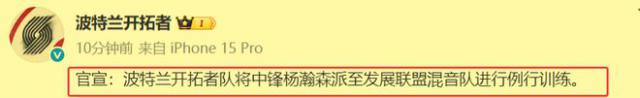 杨瀚森在NBA生涯仅代表开拓者出战了五场比赛,第六场就整场被按在板凳席。随后,开拓者发布消息,杨瀚森被下放到发展联盟混音队。