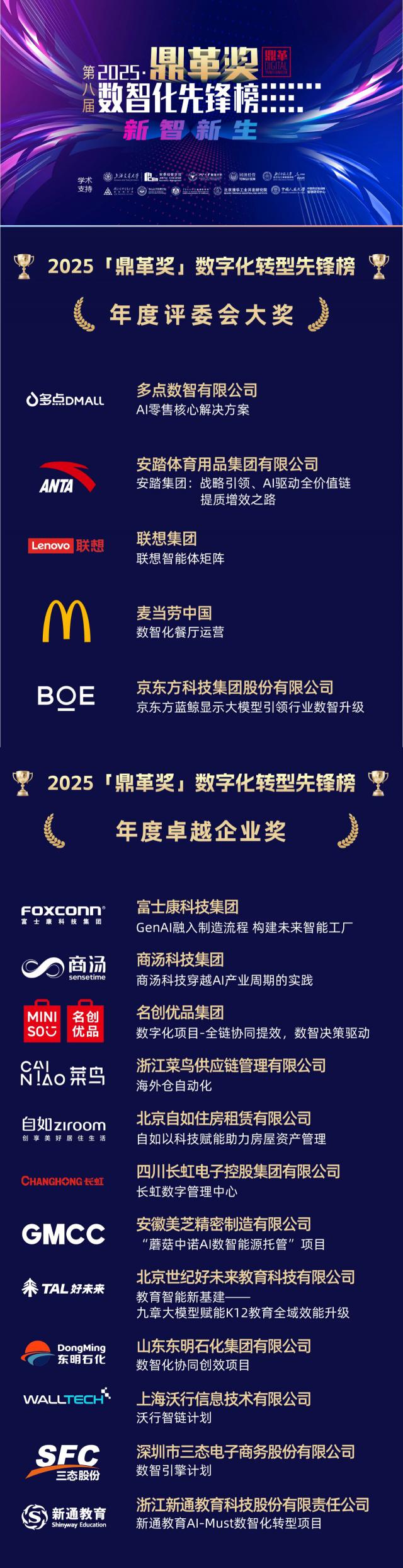 10月31日,备受业界瞩目的“2025·「鼎革奖」数智化先锋榜”评选结果在北京盛大揭晓。「鼎革奖」数智化先锋榜,意在探寻数字/智化转型的优秀案例,为中国企业的数字/智化转型创新之路照亮方向。