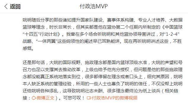 “细究其原因,姚明本人缺乏系统的管理经验,所用的一些人士也辜负了姚明的信任,不仅没帮上姚明还给姚明各种添乱,这导致姚明壮志未酬、很多理念最终沦为纸上谈兵。可悲可叹!”