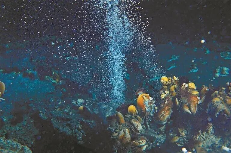 在冷泉周围,一大批生物(如管状蠕虫、贻贝、冷水珊瑚等)围绕着渗出的化学物质生存。它们不依赖光合作用,而是通过化能合成作用生生不息。这套独特的生命系统被称为冷泉生态系统,被誉为“深海绿洲”。