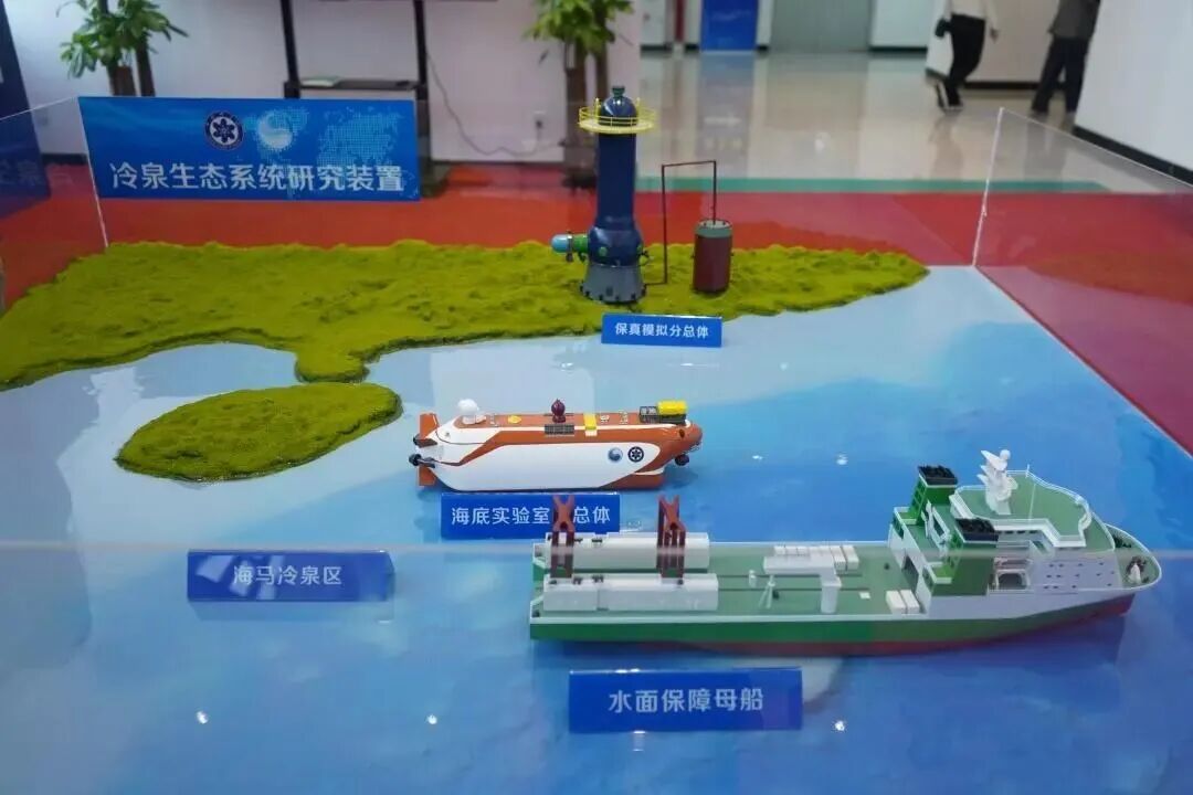 2. 保真模拟分总体:科学家们不仅要在海底研究冷泉生态系统,还想在陆地上“复刻”一个。保真模拟分总体就承担了这个任务,它主要分为冷泉舱和可燃冰舱两部分。冷泉舱体水体高15米,可燃冰的舱体内部高3.6米。