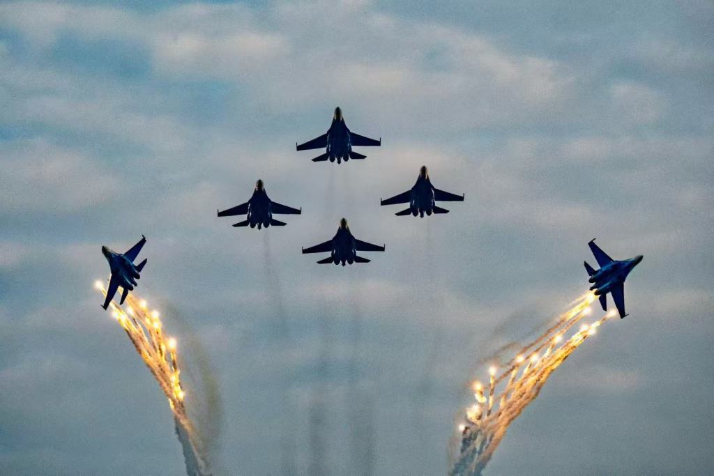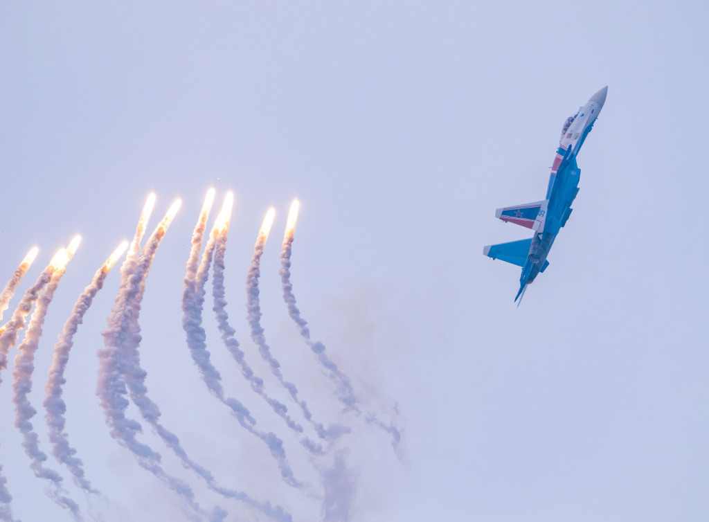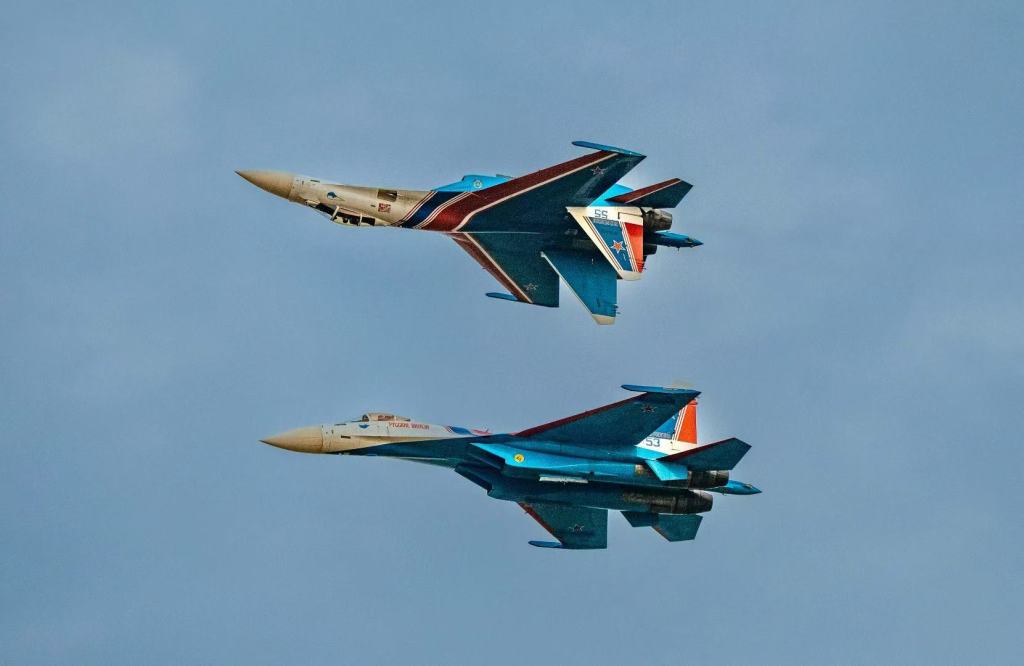 多图直击:俄“勇士”飞行表演队蓝天惊险特技飞行